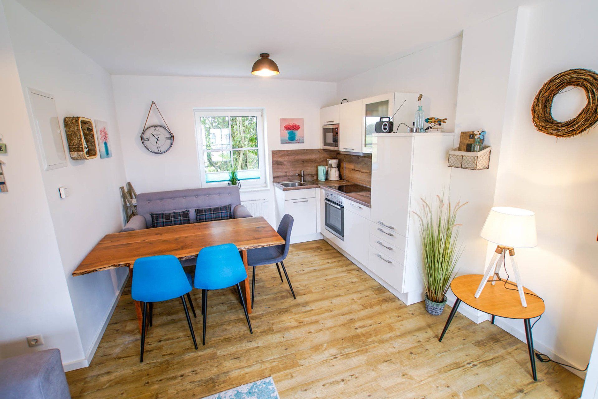 - Küche: Backofen, Herd, Mikrowelle, Kaffeemaschine, Toaster, Wasserkocher, Geschirr und Besteck, Geschirrspüler