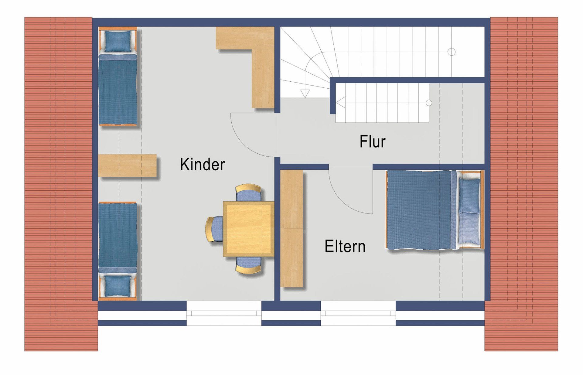 Ferien-Doppelhaushälfte im Erd-/Obergeschoss und Spitzboden (80 m²) für bis zu 8 Personen