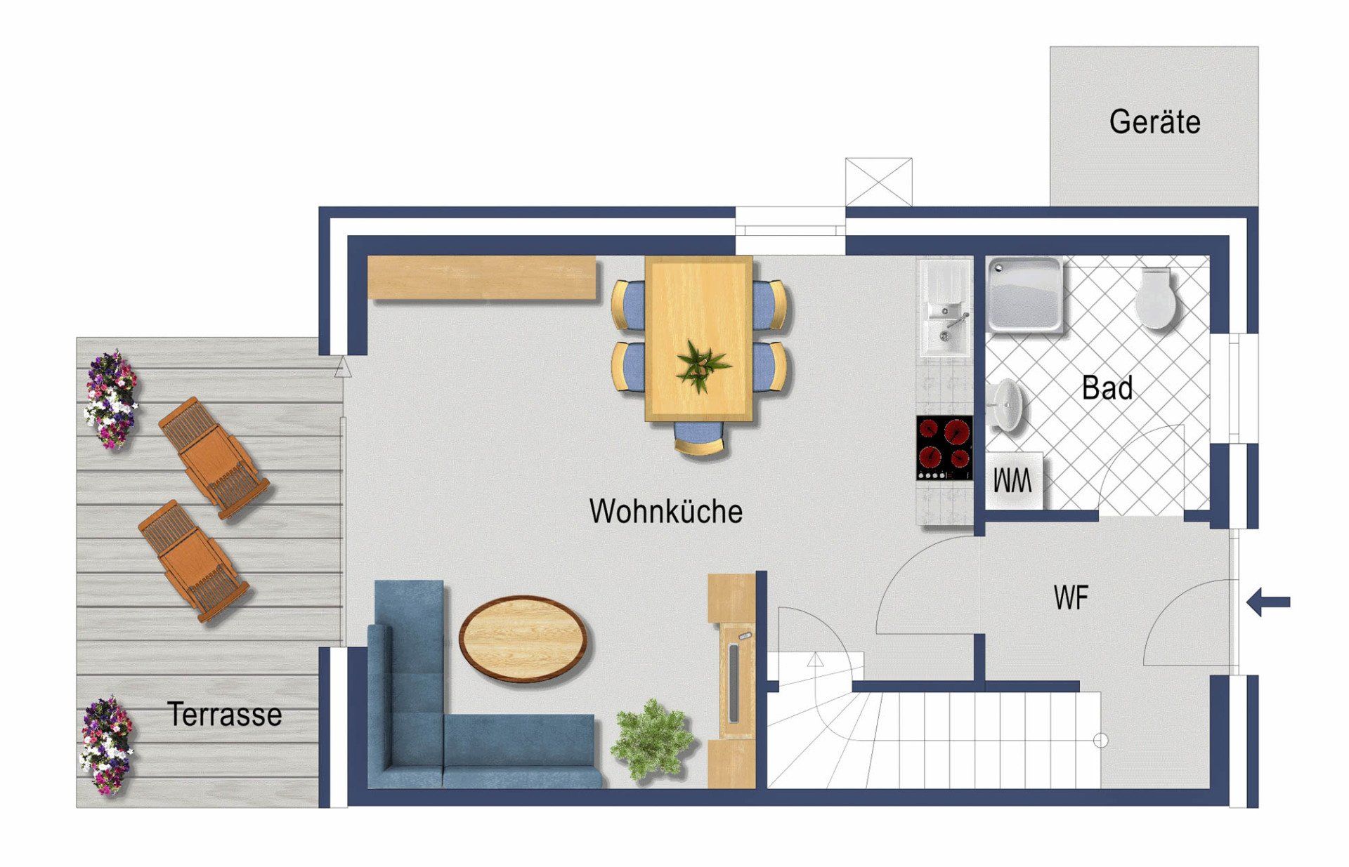 - Terrasse: Sommermöbel